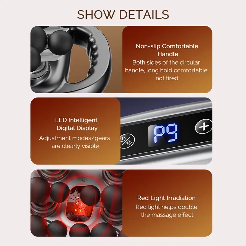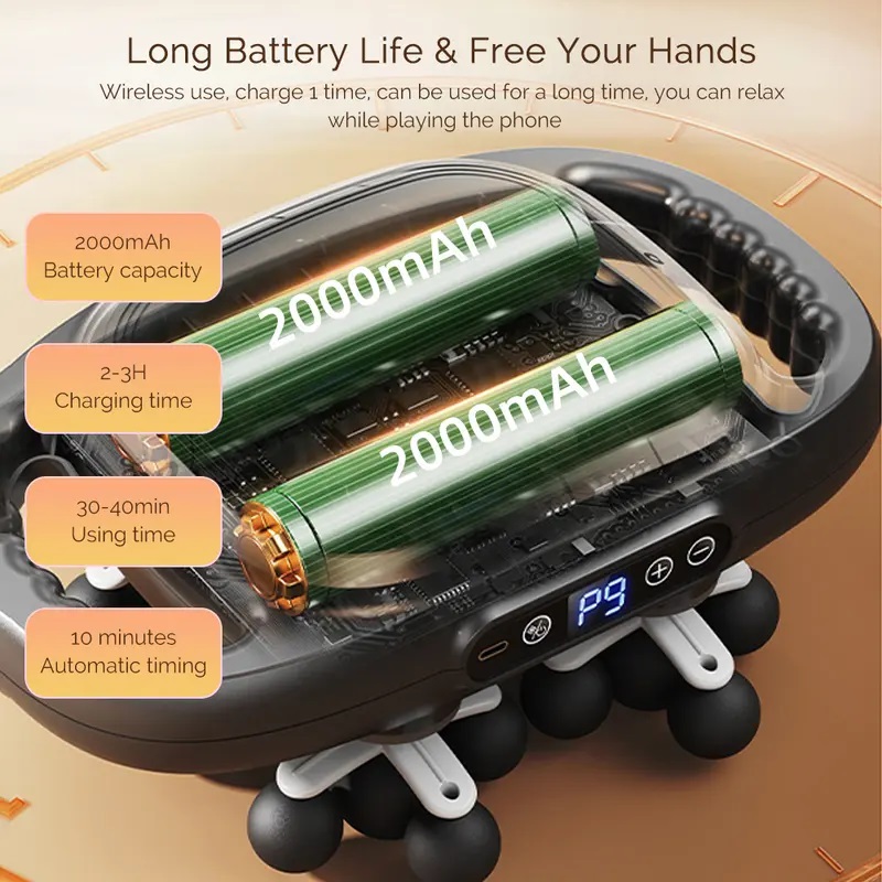 - Massage sâu tới 20mm tác động mạnh mẽ làm giảm hiệu quả tình trạng mệt mỏi và đau nhức cơ, phù hợp để mát xa ở vai, lưng, chân, bụng và bắp tay.